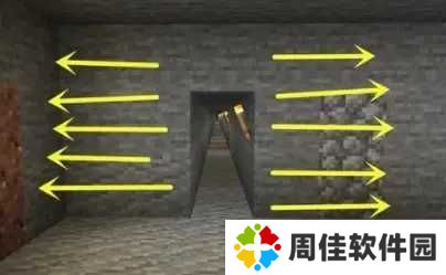 上述的方法都是广为人知的,而“羽状型挖矿法”指的是将挖出来的矿洞上羽毛一般向四周延展。而我们所要具体地表达出羽状形态的矿洞,就是我们先开一条笔直的通道同时,我们拿着稿子向两旁敲出一格的矿洞,直到镐子挖不到为止。