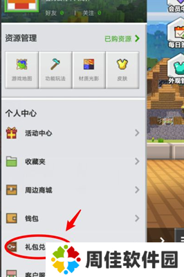 2、接着在个人中心的下方,找到礼包兑换码: