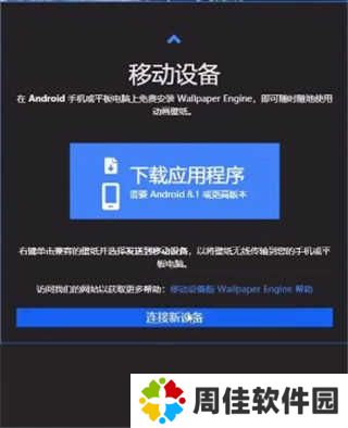1、在 Windows 上的 Wallpaper Engine 中单击新的移动设备按钮,然后选择连接新设备。