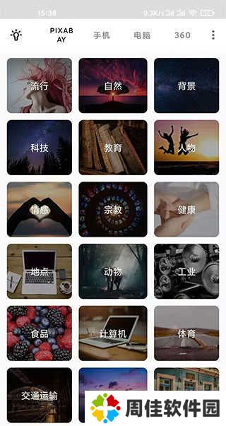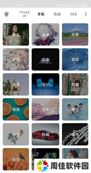 打开软件,进入主界面,可以看到共有四大专区PLXABAY、手机、电脑、360等;