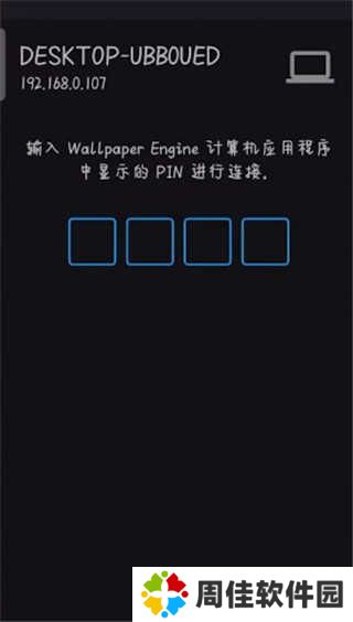 Wallpaper Engine 将显示 4 位数 PIN,您可以立即使用该 PIN 连接到您的移动设备。