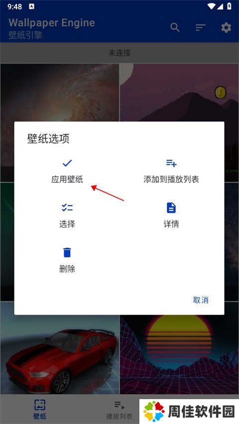 由于技术限制,Android版Wallpaper Engine无法直接访问创意工坊来下载新壁纸。但是,您可以通过计算机上的Wallpaper Engine将壁纸合集无线传输到您的手机。