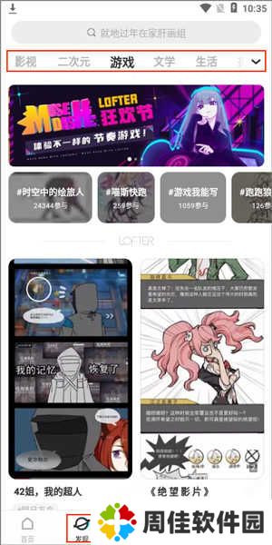 3、发现功能中玩家能够与其他的用户一同参与有关影视、生活、游戏、二次元、文学等用户感兴趣的话题;