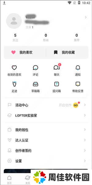 1、打开LOFTER(LOFTER),点击我的,点击右上角设置图标。