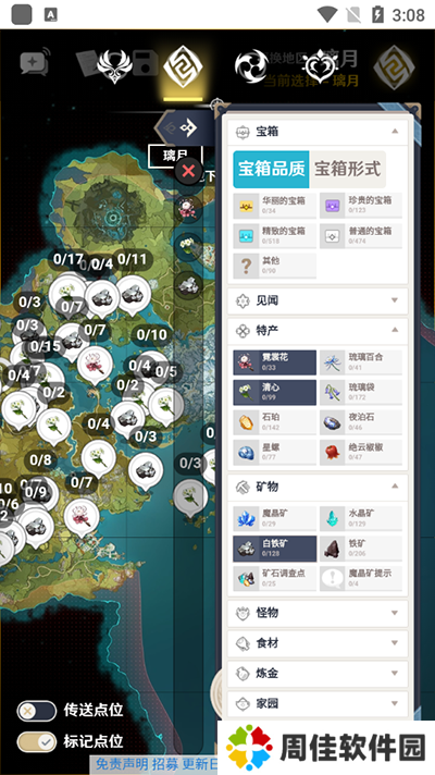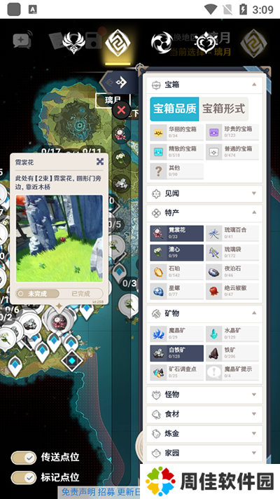 3、我们可以点击左侧想要显示的资源,例如宝箱、特产、矿物等。