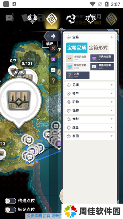 1、信息齐全 无论是弟子分布,宝箱分布,材料分布,还是任务分布,一应俱全!资源分配详情一网打尽!由于种类繁多,为了方便玩家寻找,工具将它们分为9大类:神眼、矿物、宝箱、任务、精英怪物、功能、突破材料、动物、收藏品。