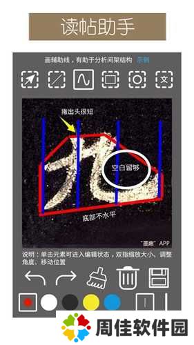 1、碑帖单字。把经典书法碑帖截成单字图片,配上米字格,每页展示一张,更方便、更准确的在手机端读帖、临帖。
