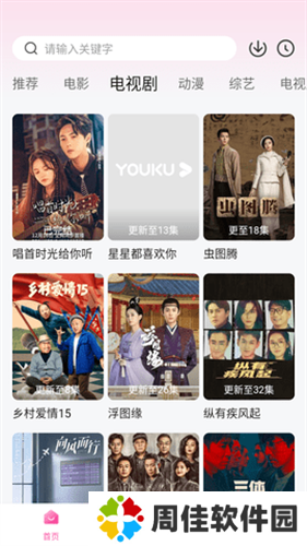 1、主页展示了丰富多样的电影内容,包括电视剧、电影、动画和综艺节目等。