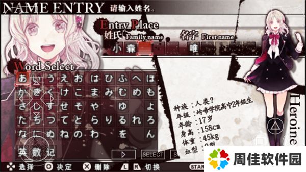 5、设置你的角色昵称,通过方向选择键、O确定键进行选择,完成设置后正式开始游戏;