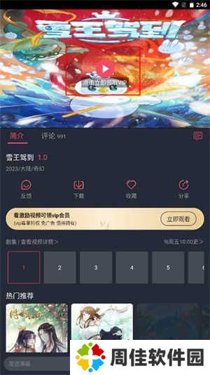 2、在动漫播放界面中,上方会有一个“点击立即领取VIP”,直接点击上方的播放区域。