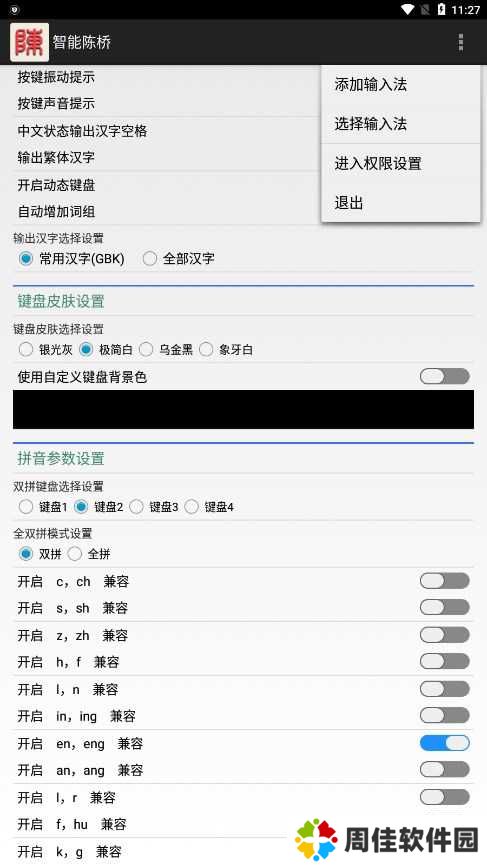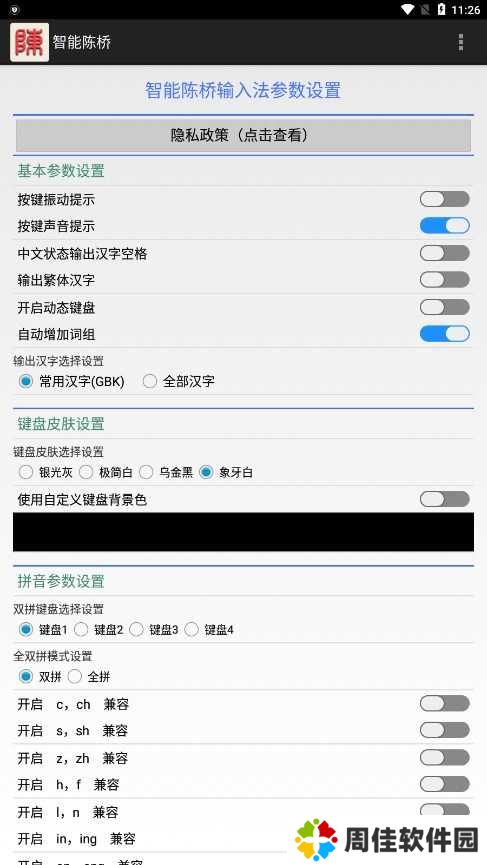 4、在设置界面,可以设置基本参数,键盘皮肤设置。