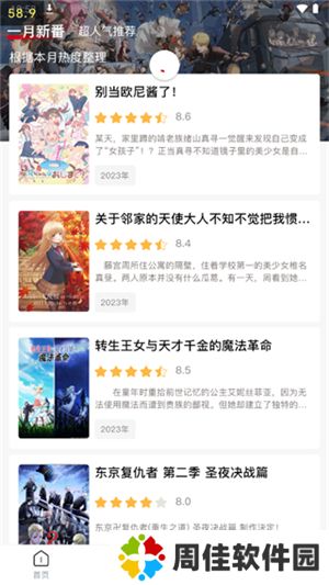 6、还有排行榜的功,可以看到最近都有哪些热门的内容,对于处于动画荒的用户来说,这个功能就很好用了,可以看到每个动漫的评分,方便大家看高质量的作品。