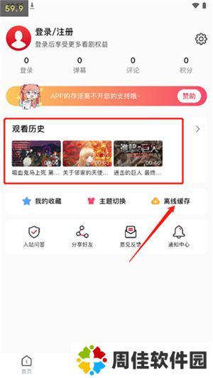 6、最后在我的页面中,可以查看到我们的观看历史及缓存动漫。