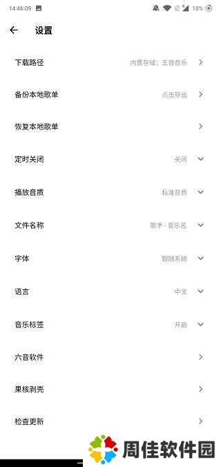 Android10及以下的系统版本可以在设置里自定义下载目录,默认目录为内置存储下的五音音乐。