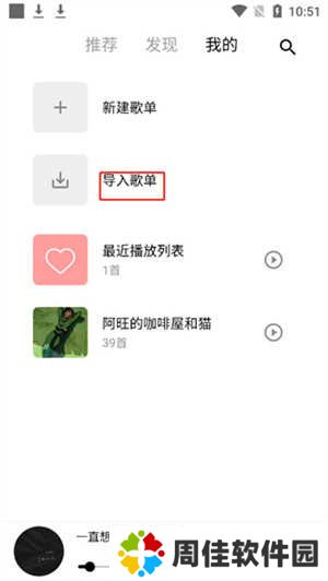 等待识别完成后,最近播放列表下面就会出现刚导入的歌单,如图所示;