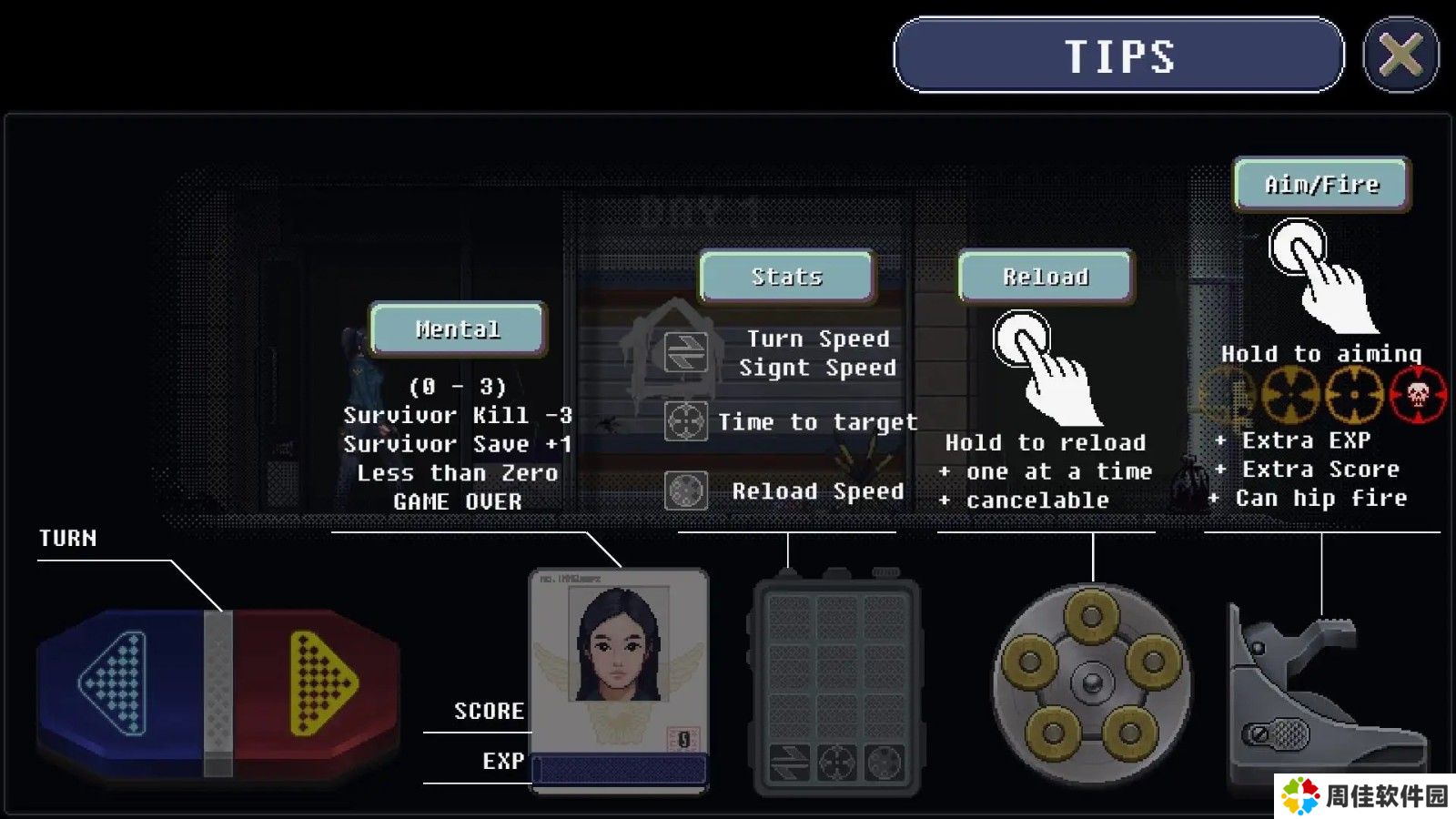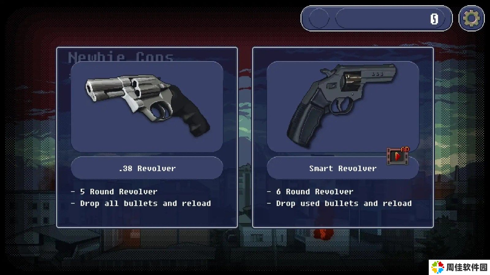 a、在这里为了能够更加有效的阻挡僵尸,你必须从两把不同难度的左轮手枪中选择一把。