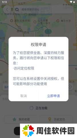 2、打开软件后,需要打开定位功能,不然不能开启服务。