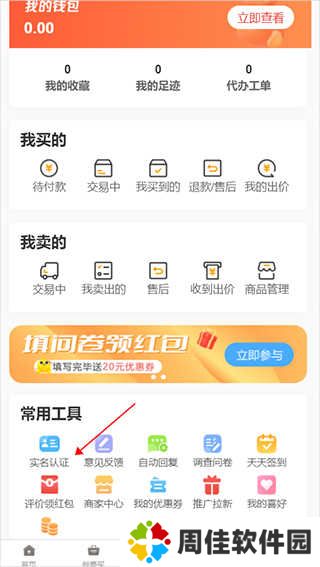 1.首先用户登录应用后进入【我的】页面中点击【实名认证】,然后按流程完成交易实名认证