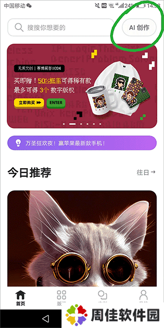 想用无界版图app进行ai绘画,只需要打开app,进入首页点击屏幕最上方右侧的 “AI创作”
