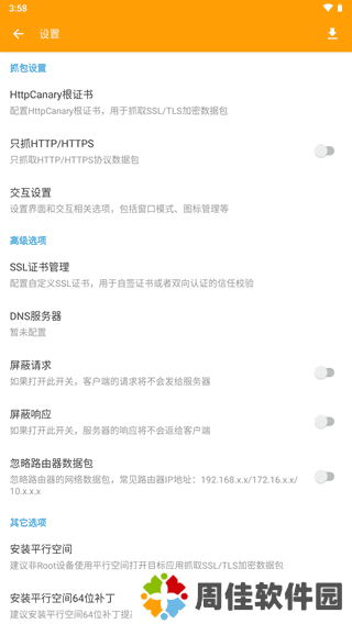 5、支持对抓包数据进行筛选、搜索,以及设置抓取指定应用和指定Host/IP。