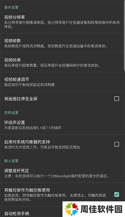 Moonlight 中的流分辨率应设置为与主机 PC 的显示分辨率相匹配,以防止视频缩放伪影
