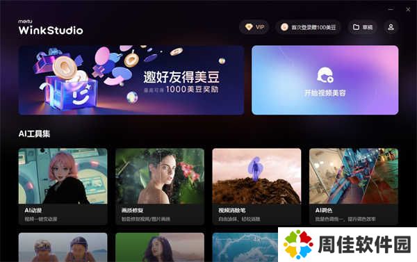 1.首先,打开已经安装好的Wink软件;在软件的主界面上,你会看到一个“开始视频美容”的按钮,点击它;