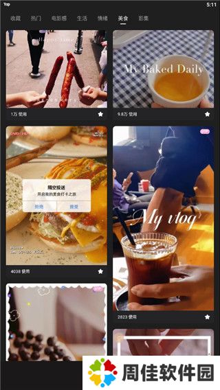 5.当然生活怎么能少的了美食呢,当你精心制作了一款美食之后你也能在这里面找到适合的模板来制作美食视频并分享到社交平台,用美食来记录生活;