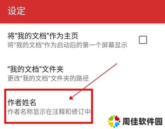 3.在【设定】页面中点击最下方的【作者姓名】。