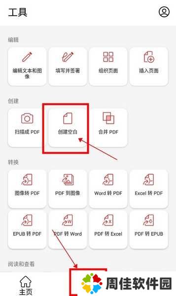 1.安装并打开PDFExtra软件后点击进入【工具】页面,并在创建一栏中找到【创建空白】一项。