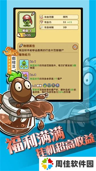 【展现力量】需要去合理利用各种植物的不同技能,增强植物的力量帮助自己抵御僵尸大军的攻击。