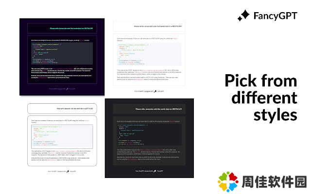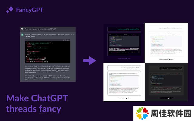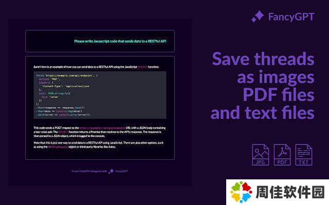 FancyGPT插件是一款专为Chrome浏览器设计的扩展工具,在通过添加不同的设计元素来美化并优化ChatGPT的对话体验FancyGPT可以将ChatGPT的对话导出为更加美观的图像、PDF和文本文件。无论是代码片段、列表还是表格,都能以更吸引人的方式呈现。