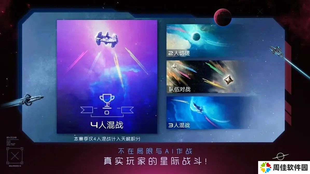 【多种模式】非常复杂的模式设计。除了强调战斗的匹配模式外,还有强调合作战斗的合作模式。