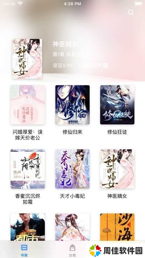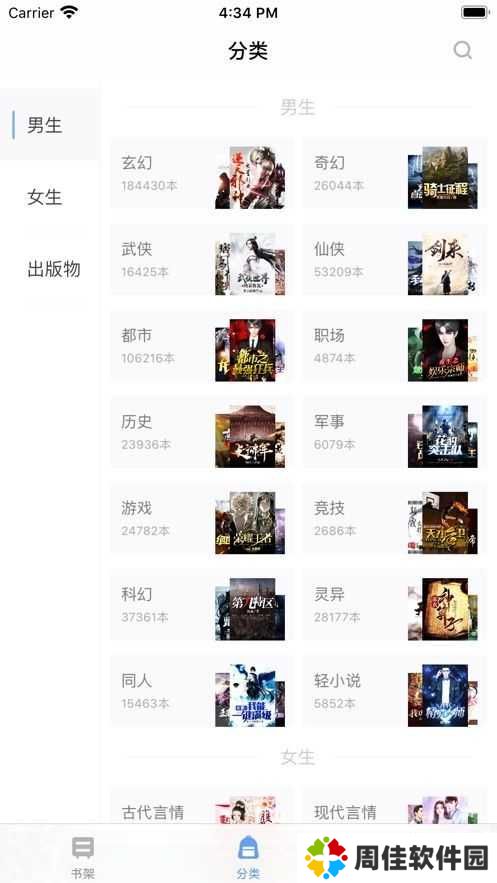 2、在分类页面有对小说的类型进行分类,方便用户更快的找到喜欢的类型。