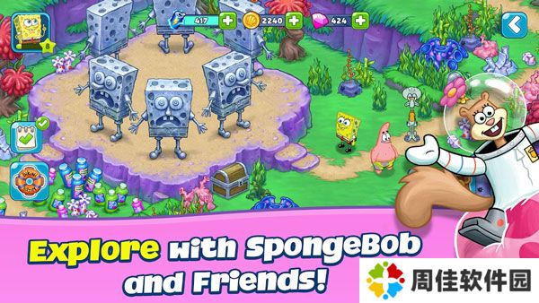 海绵宝宝果酱大冒险中文版是一款十分休闲的冒险作战游戏,在里面可以与更多的小伙伴进行探索和冒险,发现更多的危险进行解决,玩家可以和更多的朋友一起在海底进行推拿所,小心隐藏在暗处的危险,成功通关游戏从而获得丰厚奖励。