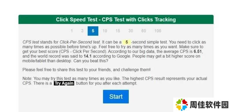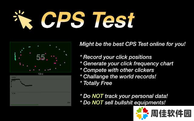 CPS手速测试插件是一个没有广告、打开就能直接测试的在线鼠标点击速度测试工具。