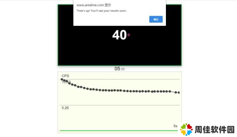 稍等片刻后,就可以看到自己的鼠标点击手速测试结果了。