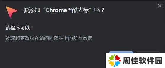 请注意,我们需要“读取和更改您访问的网站上的所有数据”权限,以允许自定义光标显示在您访问的网页上。