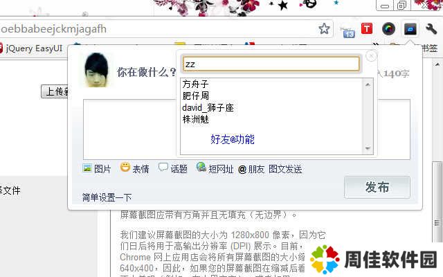 微博是基于用户关系的社交媒体平台,用户可以通过PC、手机等多种移动终端接入,以文字、图片、视频等多媒体形式,实现信息的即时分享、传播互动,而新浪微博是国人事实上的第一微博,其用户量和活跃程度也不是其他微博(如网易微博、腾讯微博等)能够相比的,为了更好的使用新浪微今天小编就为推荐一款新浪微博助手插件,它是一款可以安装到您的谷歌浏览器上使用的新浪微博助手插件,可以让你在上网浏览看微博的时候更加方便,安装该插件后,你就可以一键直达微博首页、查看@、私信、分享等等,还可以过滤广告、生成短地址等等,非常实用。