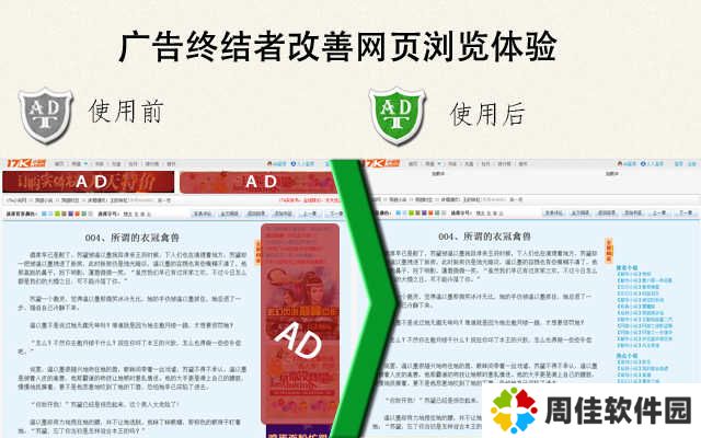 广告终结者让你不用再忍受网页上烦人的广告,不需要开通所谓的VIP,做任务,也不需要找各种功能不全的广告插件,