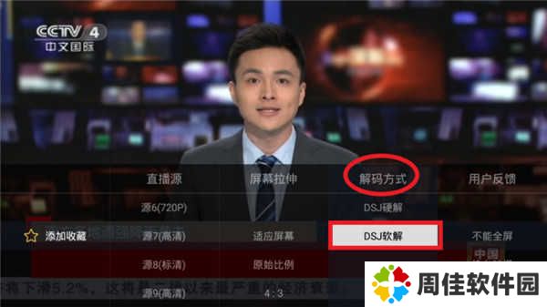 直播画面卡顿时,也可以尝试着通过改变解码方式为软解码,通常情况下软解码比硬解码播放更为流畅,并且画质更高。