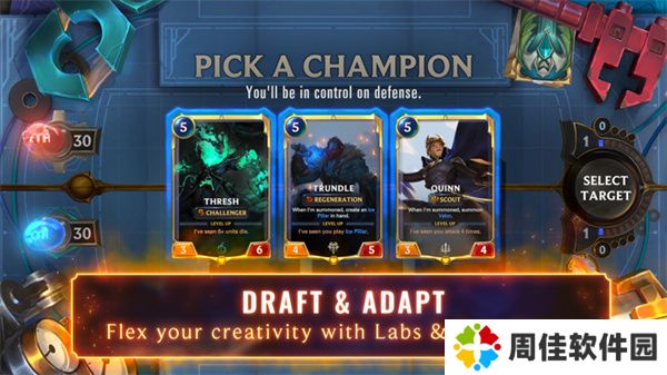 以英雄联盟宇宙为背景,在《Legends ofRuneterra》策略卡牌游戏中,你需要技巧一流,天马行空,脑力全开才可以克敌制霸。召集你的英雄布局,组合不同区域的卡牌,利用其独有的战斗风格和战略优势,打造遇神杀神,佛挡杀佛的完美牌组。