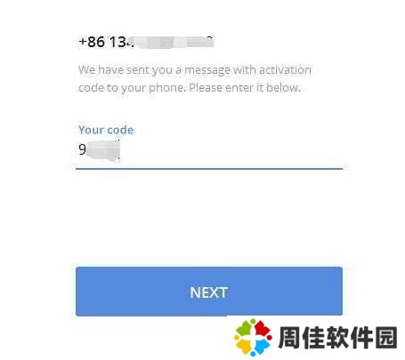 3、软件会自动为我们的手机号码发送一组验证码,输入短信验证码之后点击NEXT;