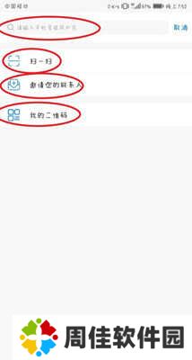 3、这里有着四种不同的方式添加好友,分别是扫一扫、输入手机号用户名搜索、邀请联系人以及我的二维码。