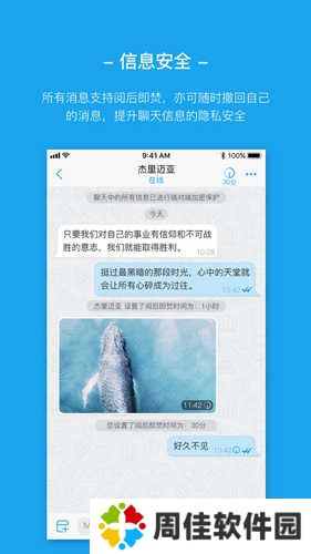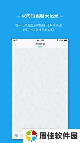 聊天记录在任何时候都可双向销毁,以防止信息被黑客窃取。