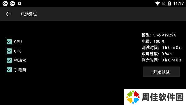 电池测试:采用CPU+GPS+振动+手电筒,测试电池耗电量及耗电速度和剩余时间。