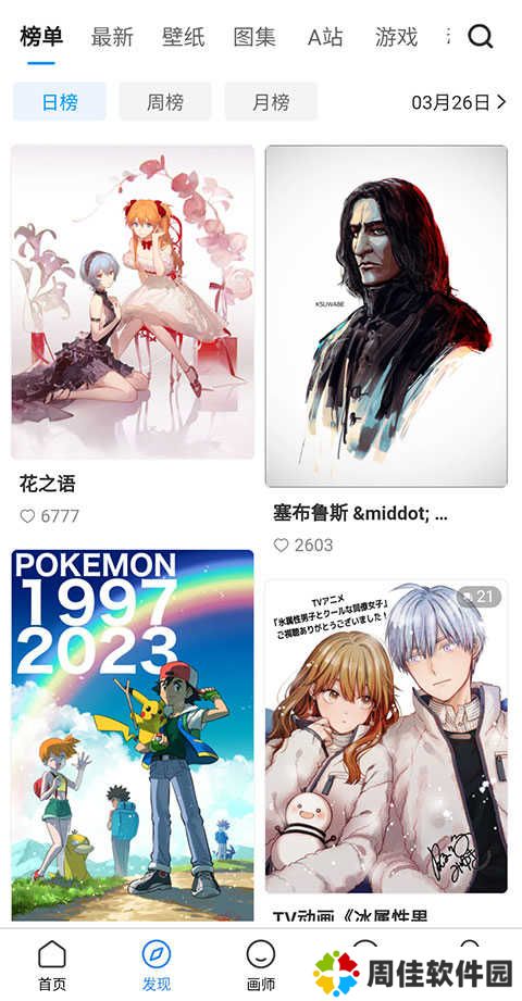 1、首先我们可以通过榜单、分类、搜索等方式来【找到喜欢的图片】。