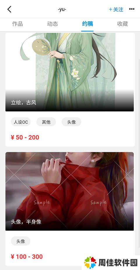 3、然后切换到【约稿】页面,并选择不同的【约稿类型】。