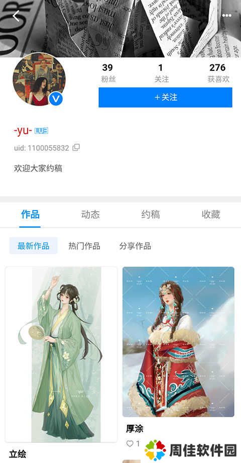 2、找到自己满意的画师后,点击进入TA的【主页】。