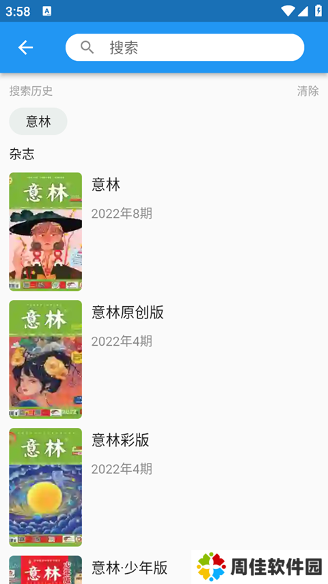 3、用户可以搜索想要看的刊物,里面会展示相关的内容,包括不同的版本杂志和刊物等等。