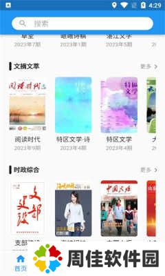 1、在本站下载安装看刊宝app最新版,打开软件,在首页中会展示各种推荐的热门的文学刊物。界面干净整洁,内容一目了然,用户可以一眼看中吸引自己的文学刊物。
